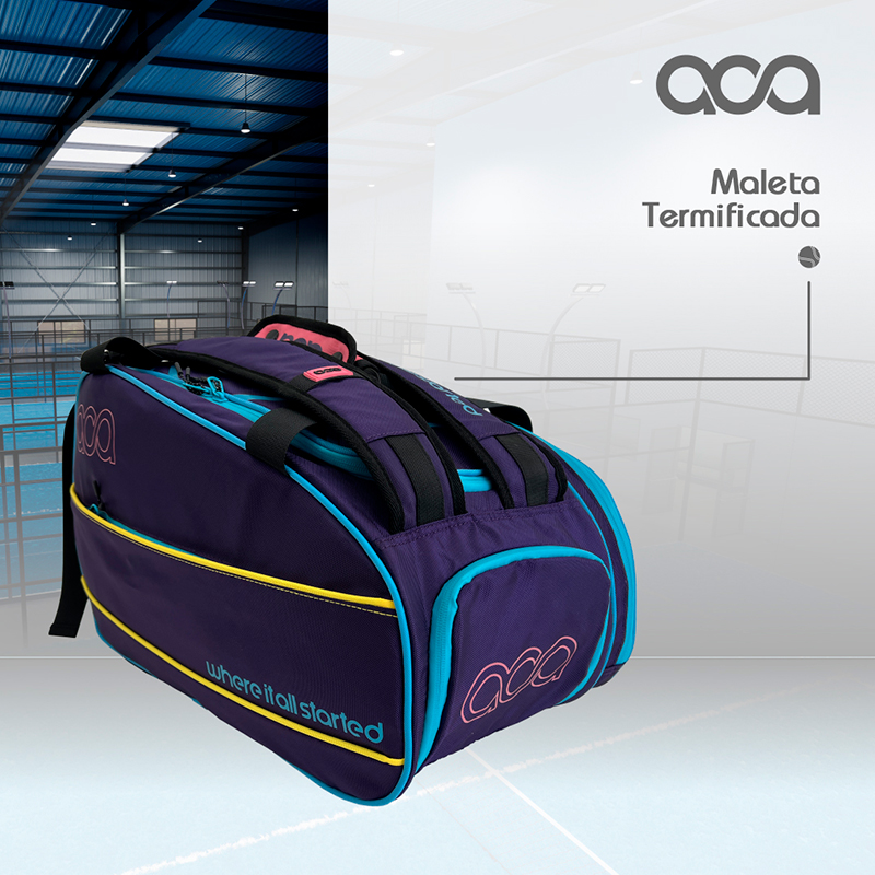 Una Maleta Termificada super versátil con compartimento especial para tu pala y otro para tus Zapatos o ropa sucia, cuenta también con varios compartimentos para tus artículos personales y un gran compartimento central para que lleves lo que quieras, (¡hasta una bolsa especial para las bolas vas a encontrar!).